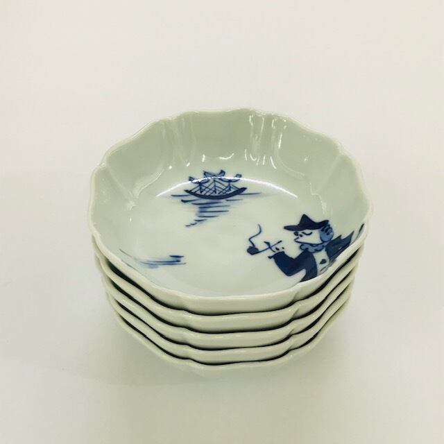 【青花】“船と異人” 八方割小鉢(紅毛異人)