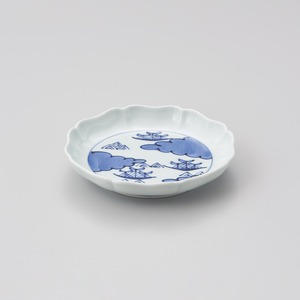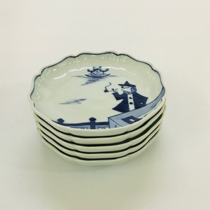 【青花】“船と異人” 八方割15cmプレート(雲に帆船)