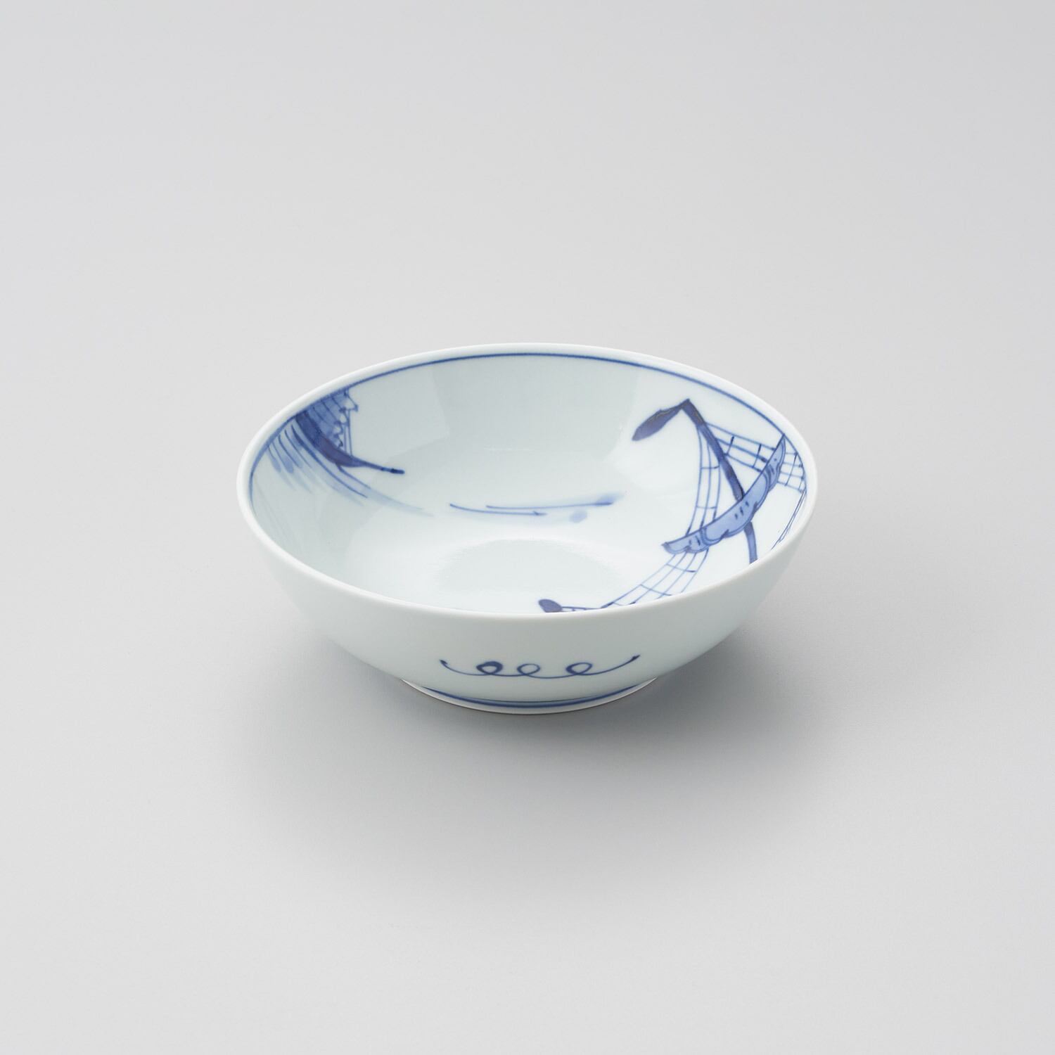 【青花】“船と異人” 5寸ボウル(出船帆船)