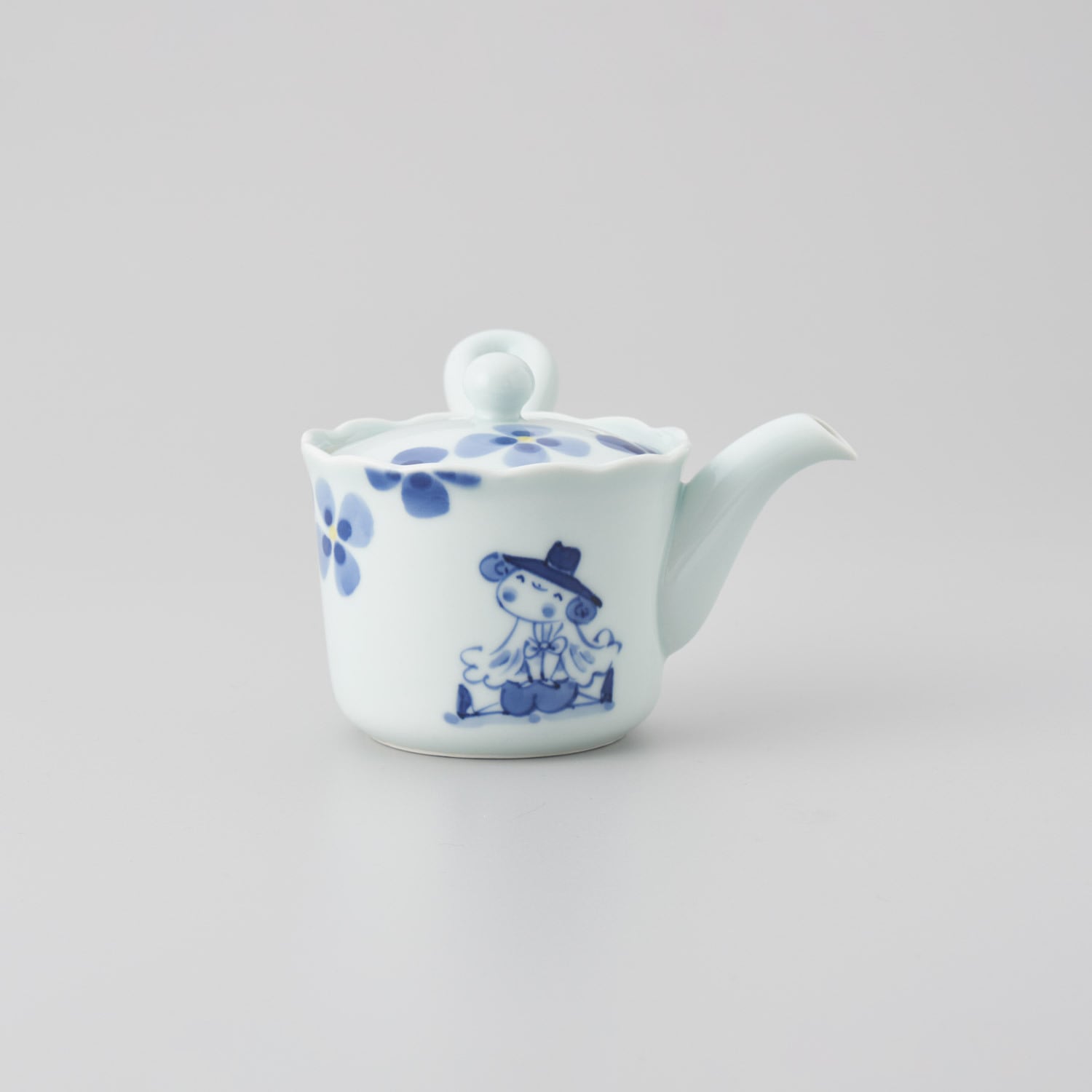 【青花】“夢見る異人” 伊之吉急須[小](のんびり/クローバー)※ステンレス網付