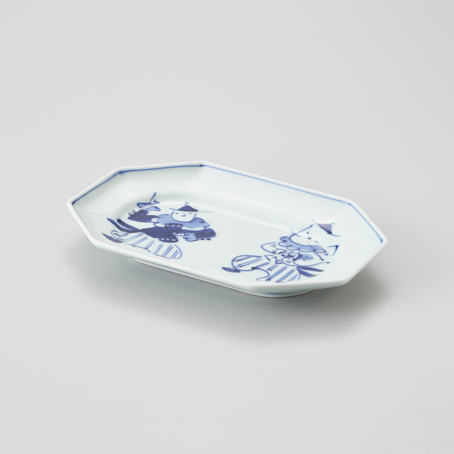 【青花】“オランダ万才” 八角長角皿