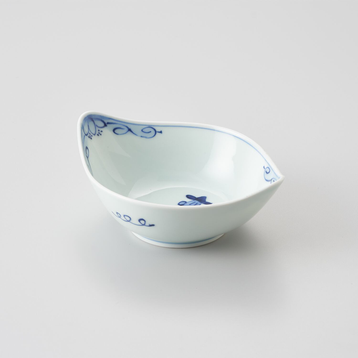重なりが良くて、とても使い易い舟型中鉢、後姿の異人さんを静かに描いてある物静かで上品な中鉢です。お鍋の取鉢、スープ、グラタンなどのお料理に最適です。